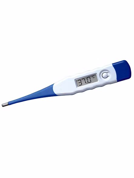 Digital Thermometer Digital thermometers work by using heat sensors that determine body temperature They can be used to take temperature readings in the mouth, rectum, or armpit When assessing digital thermometer readings, keep in mind that armpit (axillary) temperature runs about ½ to 1°F (0.6°C) cooler than oral readings.