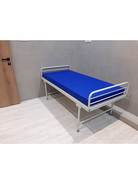 Overall Size:-1880 mm L x 830 mm W x 570 mm H Pretreated and epoxy powder coated CRCA steel bed with backrest adjustable on ratchet Two locations for I.V rod Urine bag holder Sizes available as per users need.