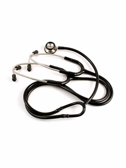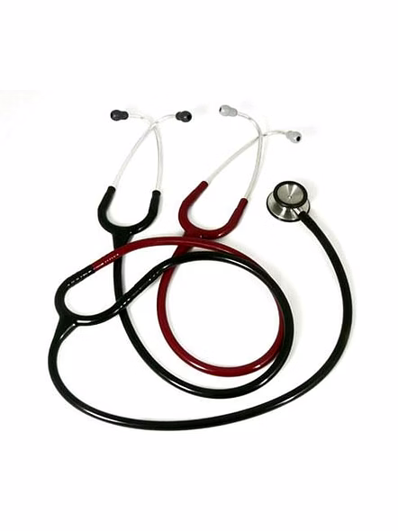Teaching Stethoscope (Double Tube) A teaching stethoscope with a double tube is used for teaching and training purposes by healthcare professionals and students to listen to the heart, lungs, and other body sounds.